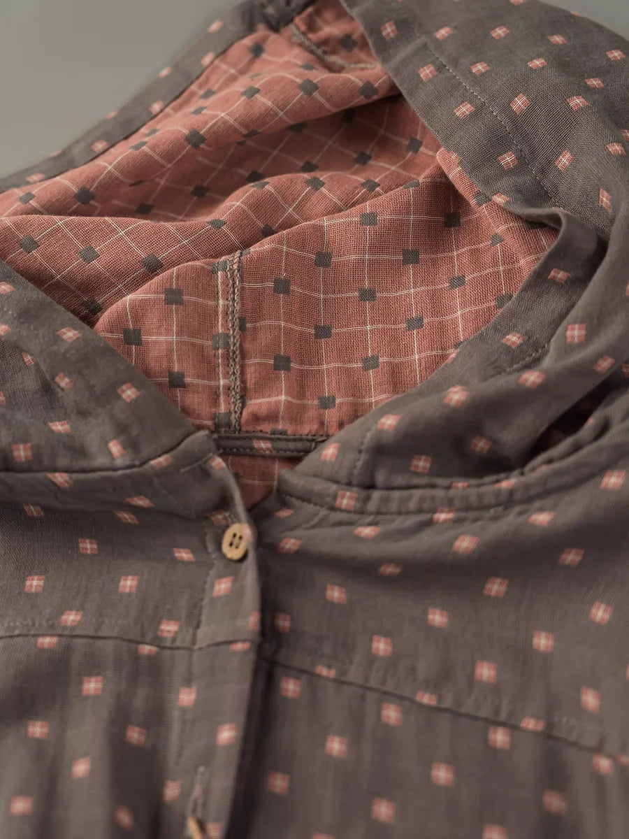100% Cotton Yarn Loose Hooded Plaid Shirts for Women Autumn Spring Casual Blouses Females Hoodies Classic Oversized Tops