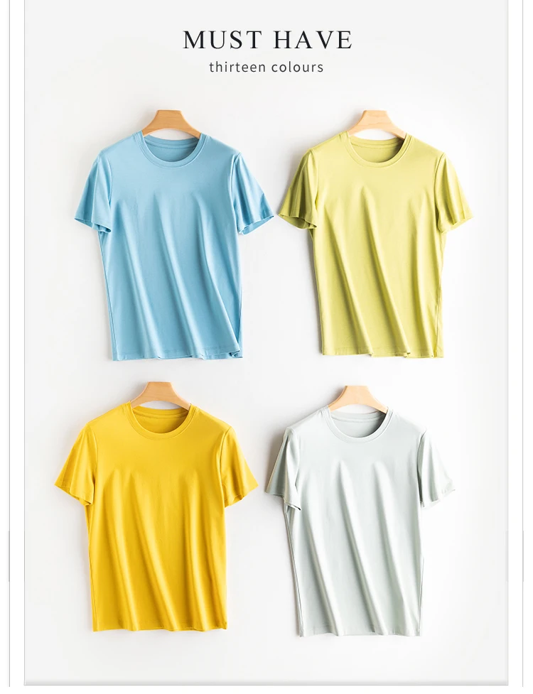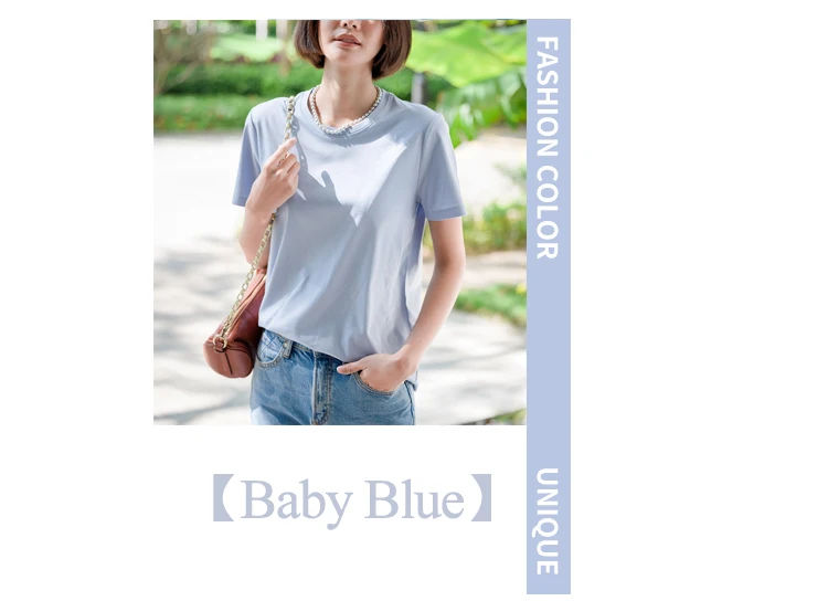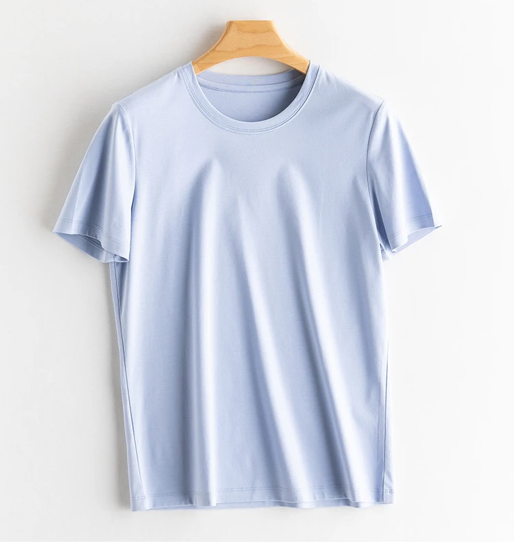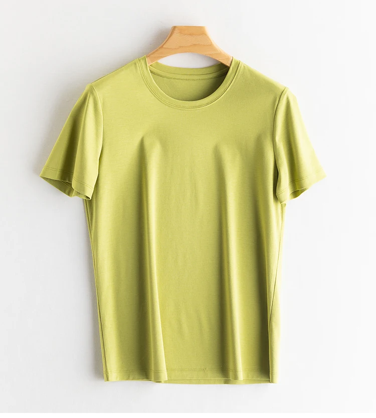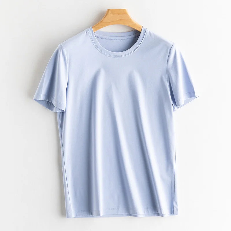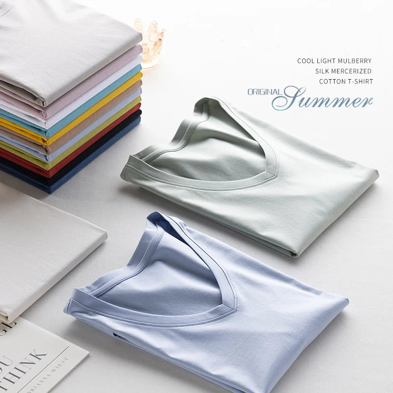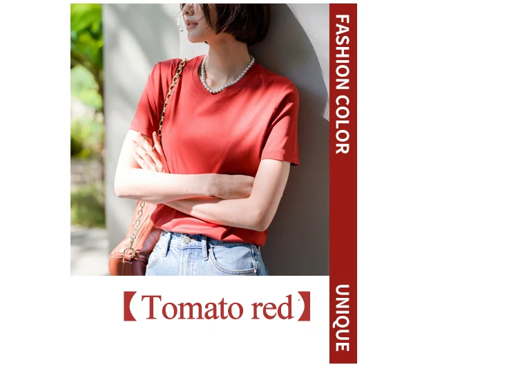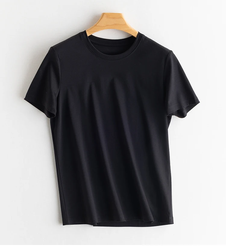 6% Real Silk Cotton Modal Women's T-shirt 2026 Summer Tees Short Sleeve Solid Tee Shirts V-neck Casual Woman Basic T shirt Tops