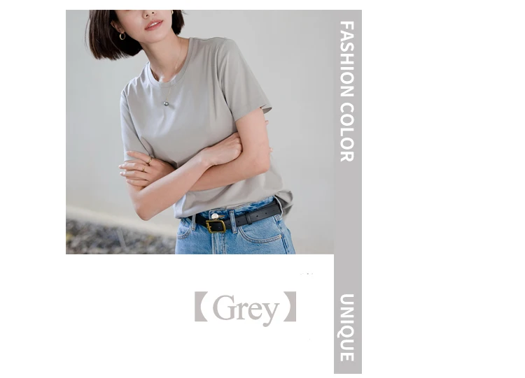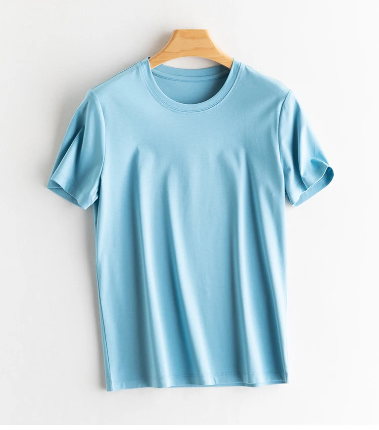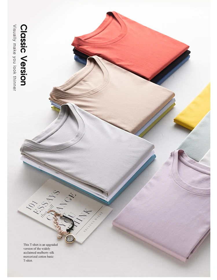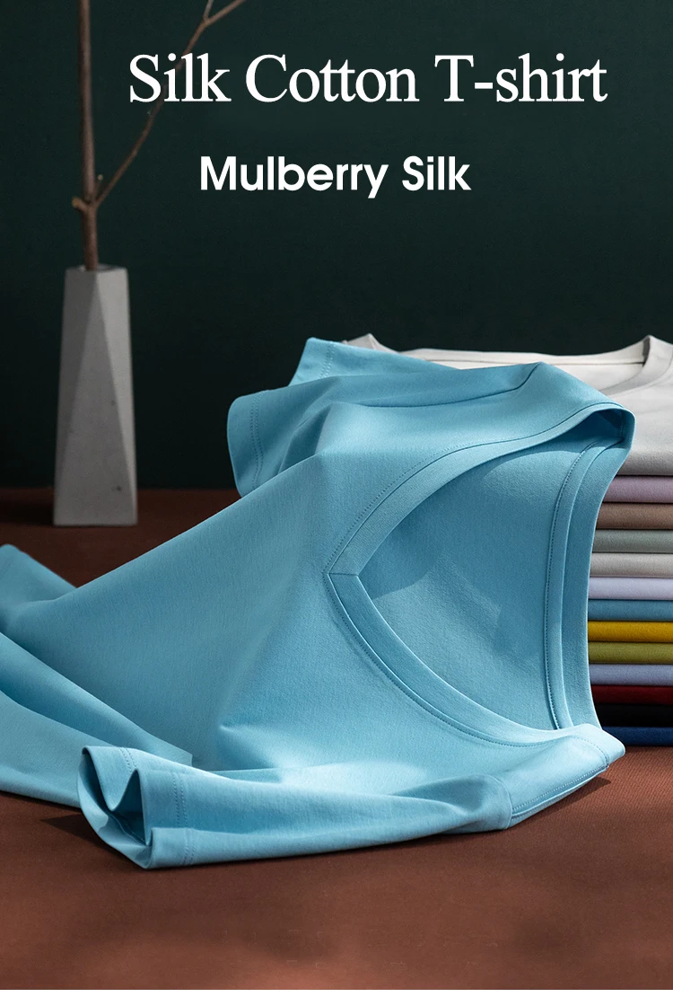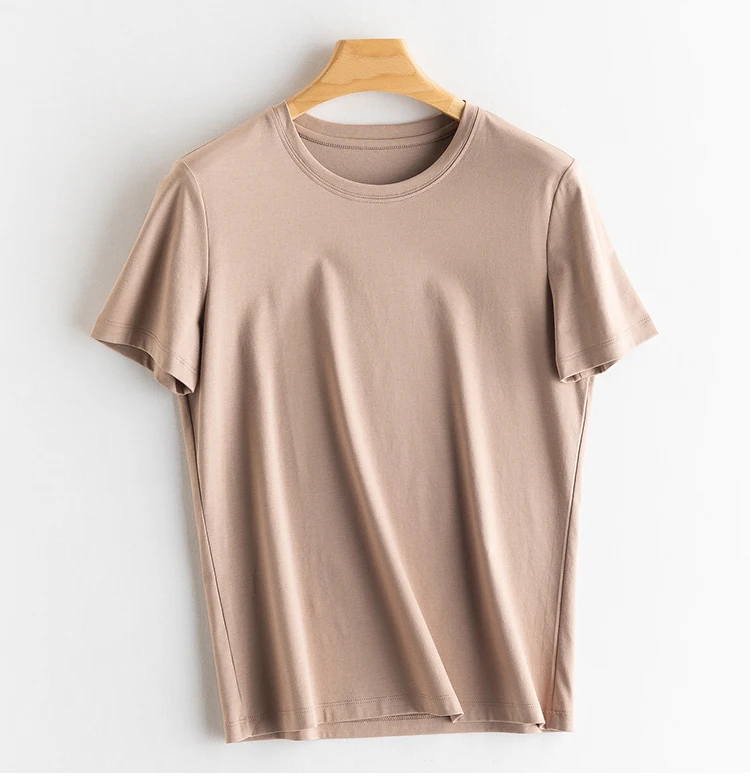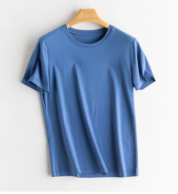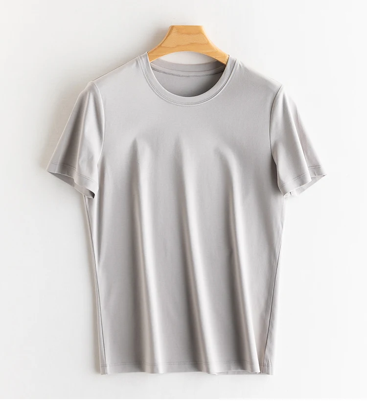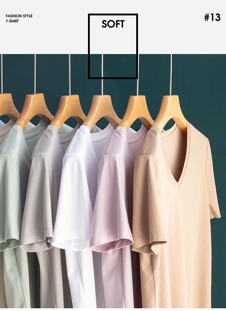6% Real Silk Cotton Modal Women's T-shirt 2026 Summer Tees Short Sleeve Solid Tee Shirts V-neck Casual Woman Basic T shirt Tops