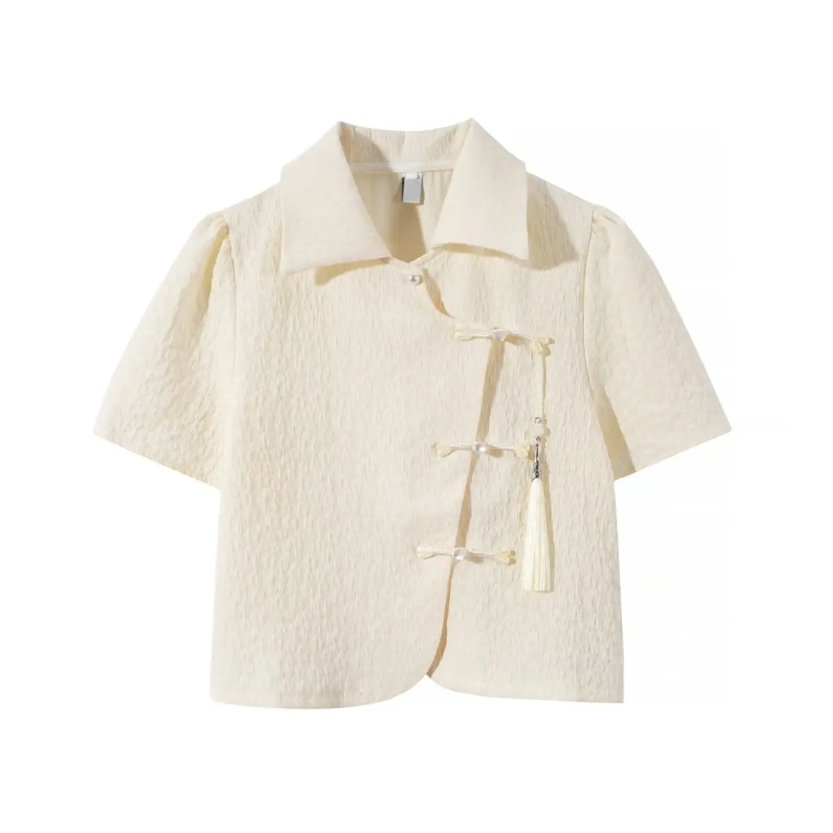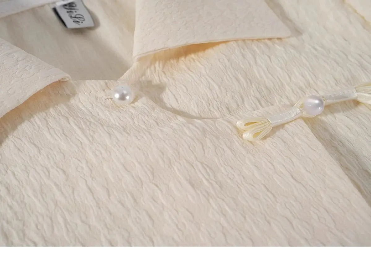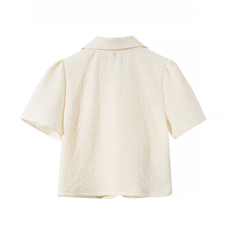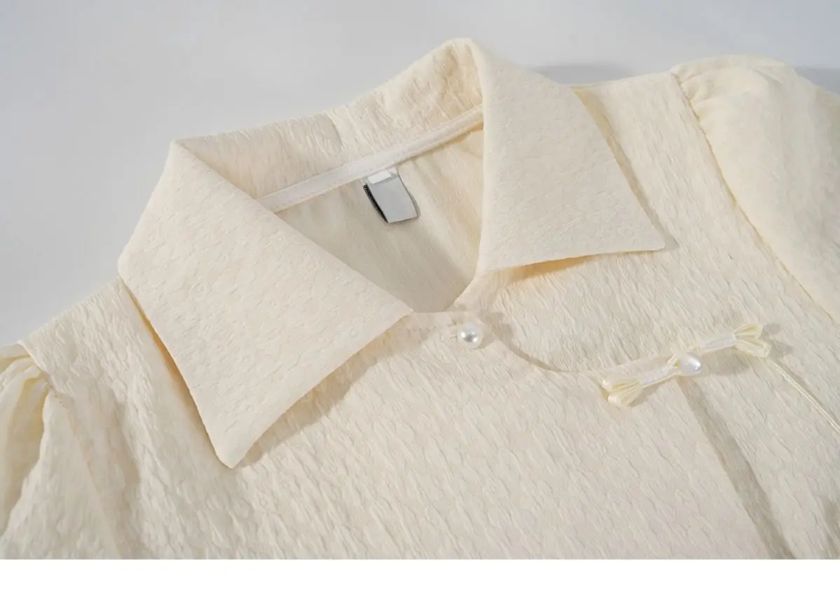Chinese Style Shirts Women Buckles Apricot Short Sleeve Turn Down Collar Vintage Elegant Ladies Streetwear Stylish Chic Crop Top