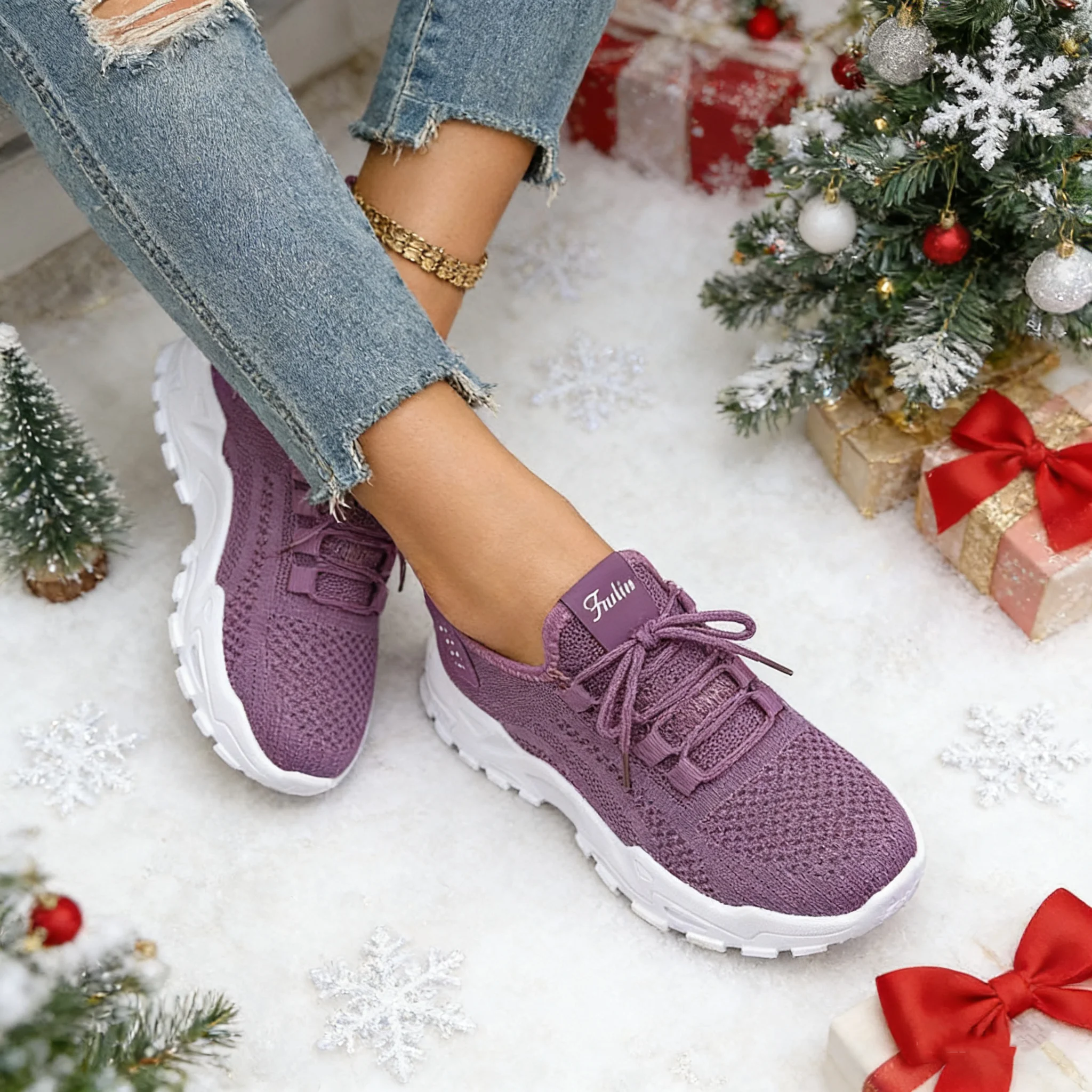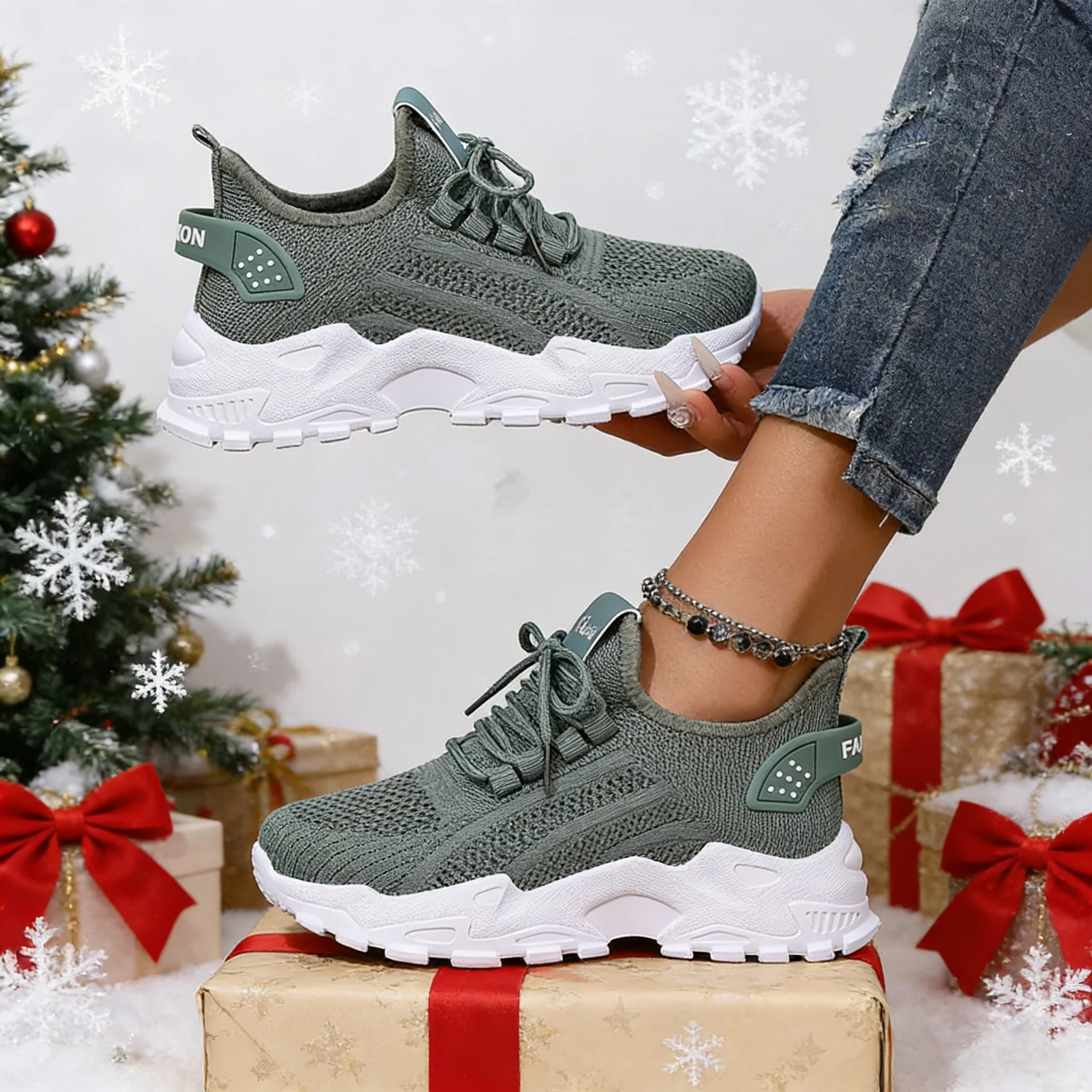 Fashion Knitted Sneakers for Women Mesh Breathable Lace-up Casual Sports Shoes Women's Casual Shoes