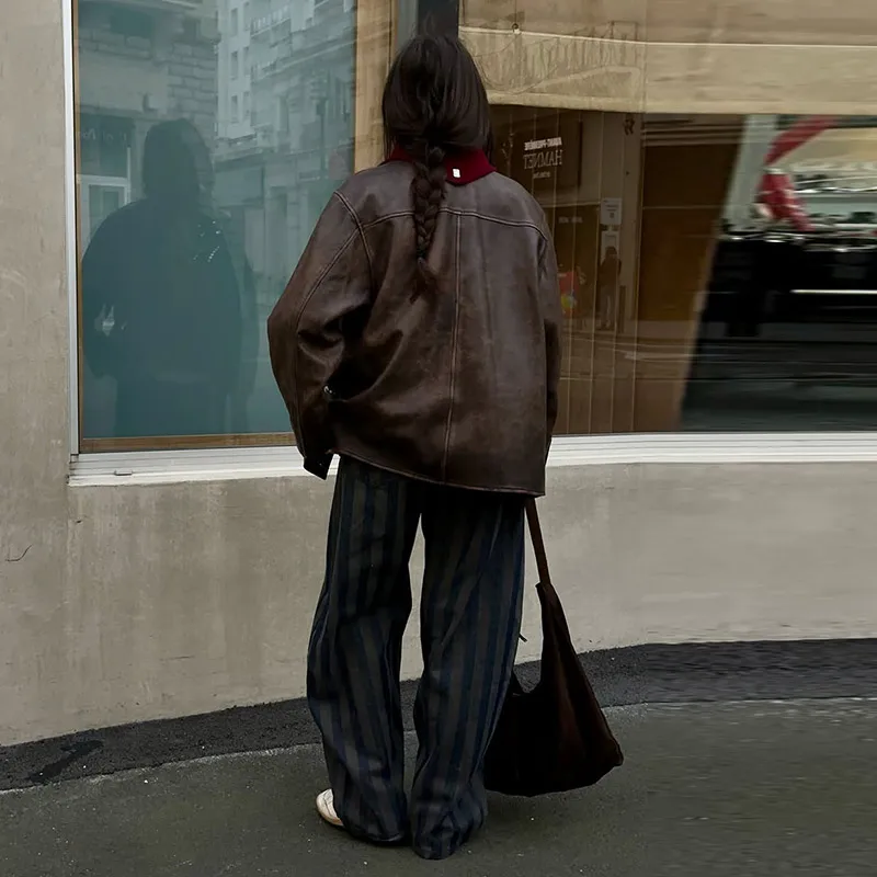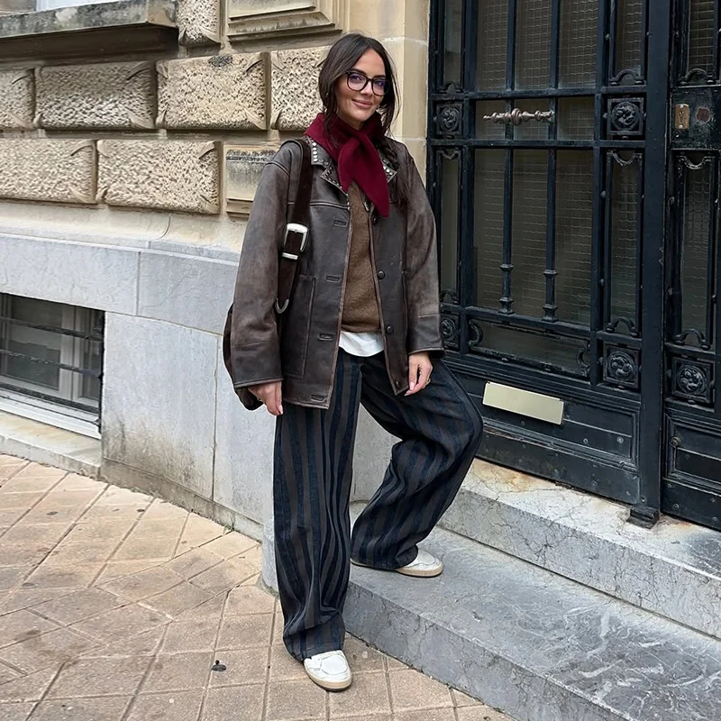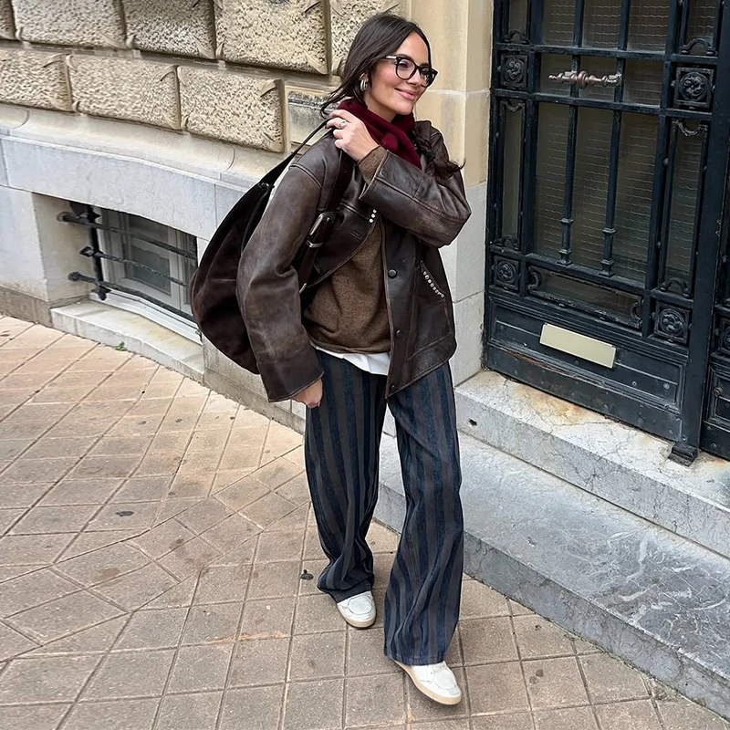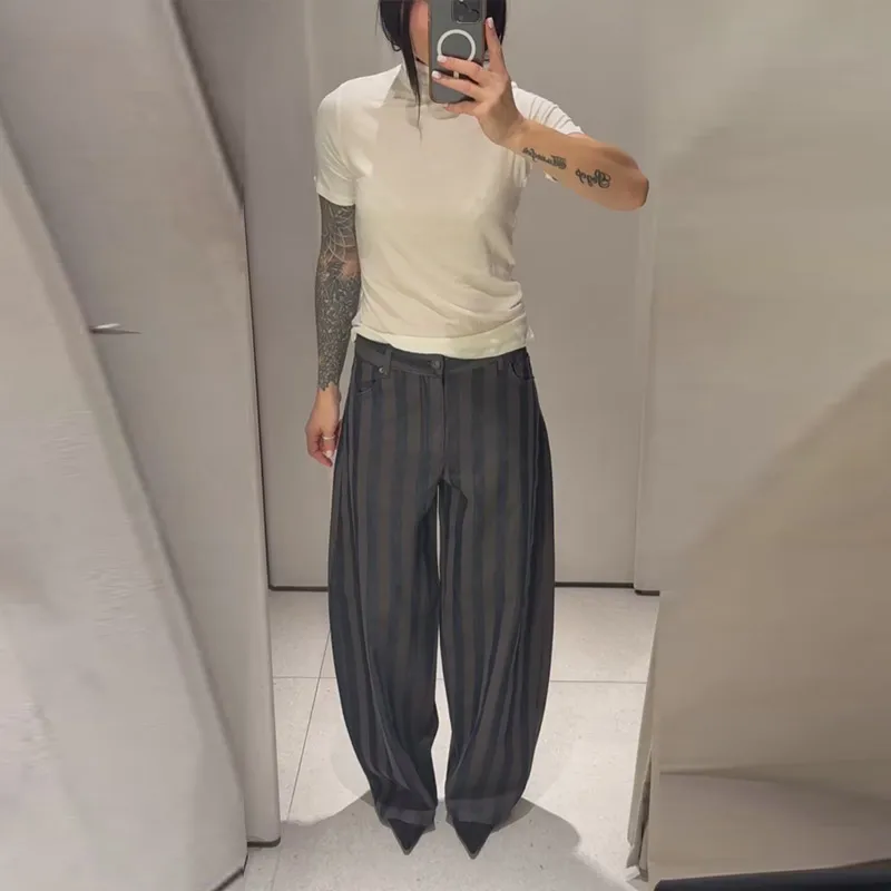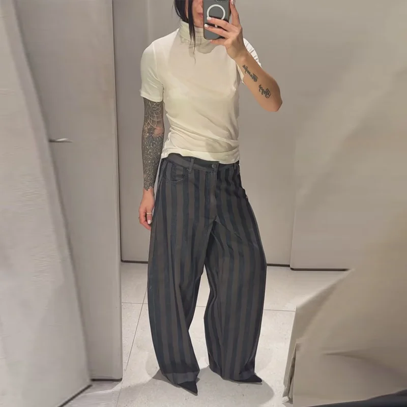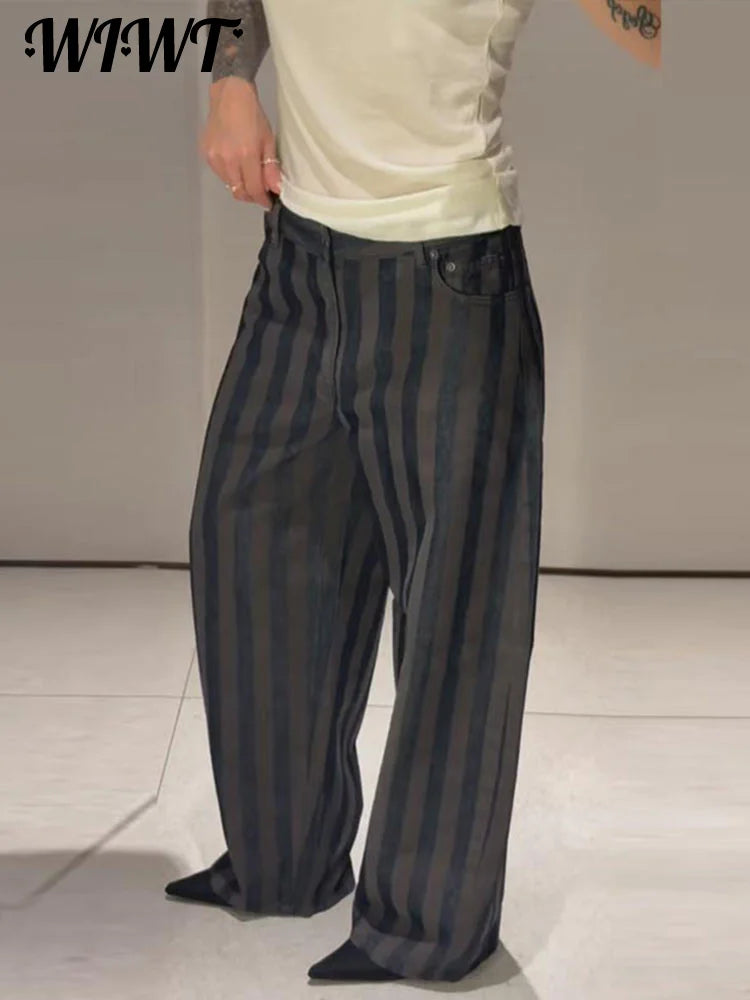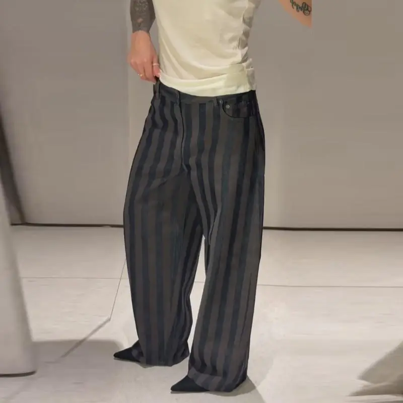 Female Striped Casual Trousers Women's Loose Oversized Wide Leg Jeans Long Pants 2026 Spring New Ladies High Street Outwear