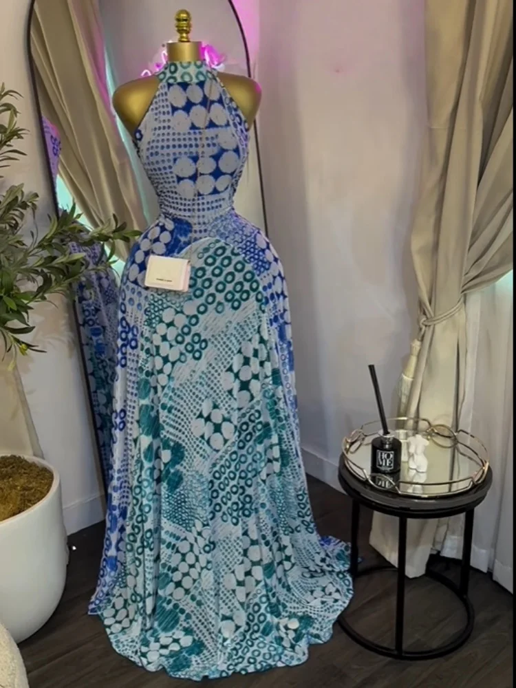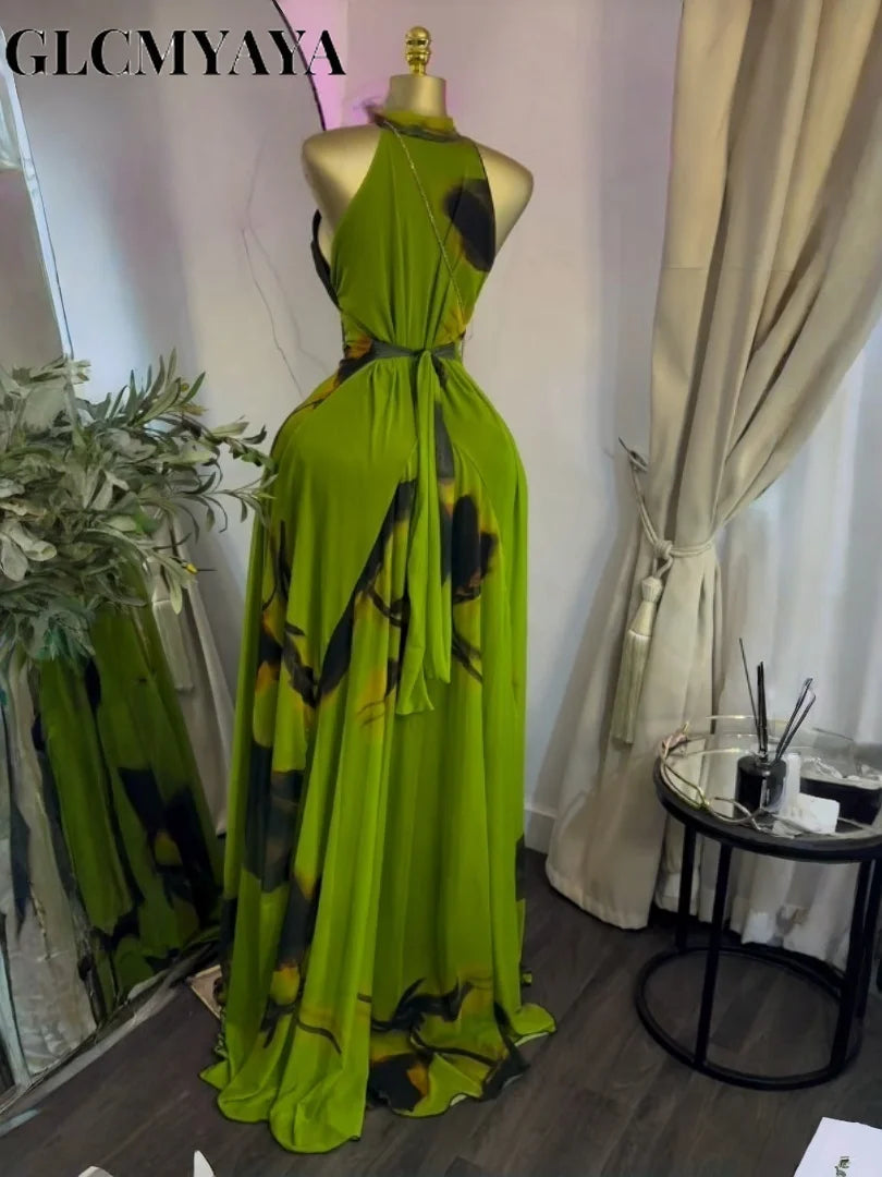 GLCMYAYA Women Printed Sleeveless with Sashes Fit and Flare A-line Maxi Dress 2026 Streetwear Beach Holiday Long Dresses Vestido