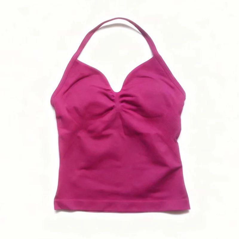 Gym Beautiful Open Back Bra Running Workout Impact Halter Longline Strappy Top Sports Yoga Vest Women's Fitness Tank Top