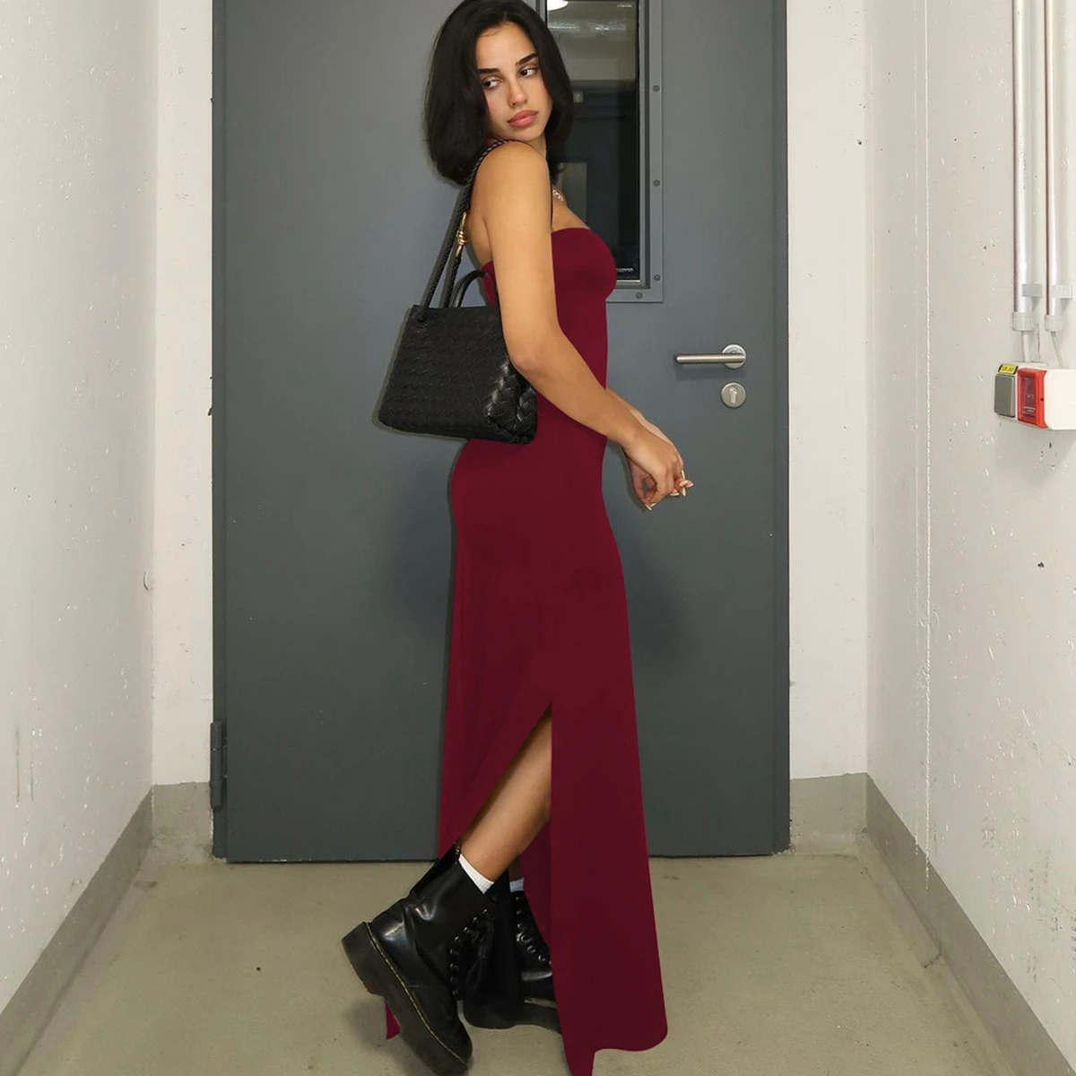 Hugcitar Black Strapless Long Sleeve Sexy Bodycon Maxi Prom Dress 2024 Fall Winter Elegant Women Outfit Evening Party Festival