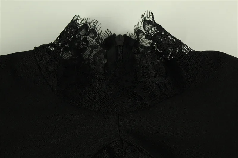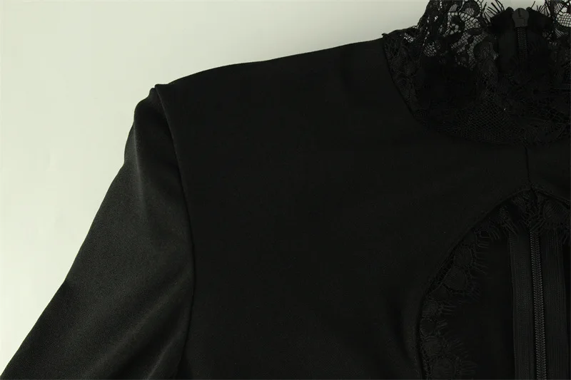 Lace Patchwork Hollow Out Bodycon Sheath High Collar Women Dresses Half Sleeves Outfits Sexy Club Fashion Female Mini Vestidos