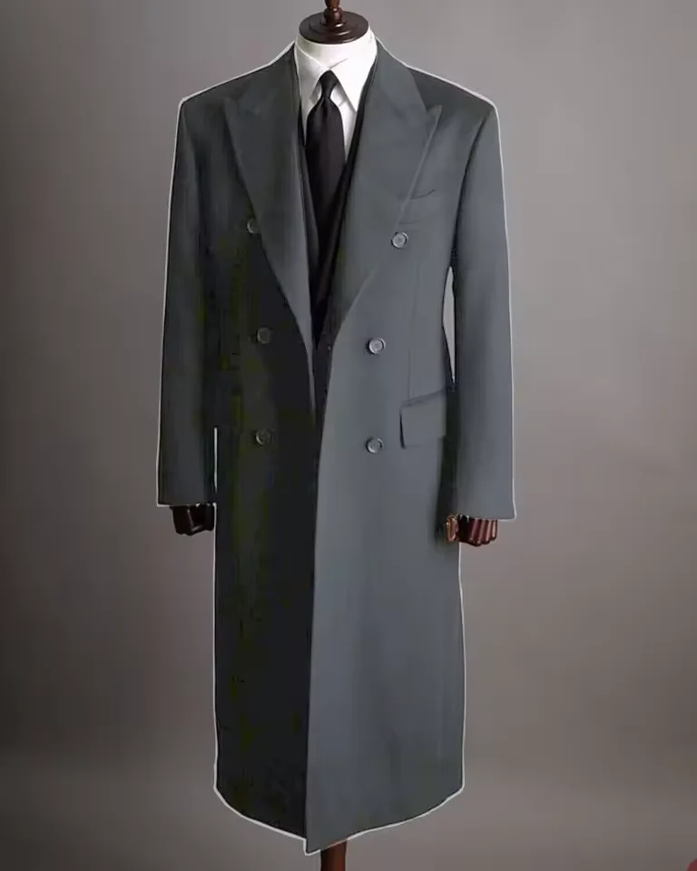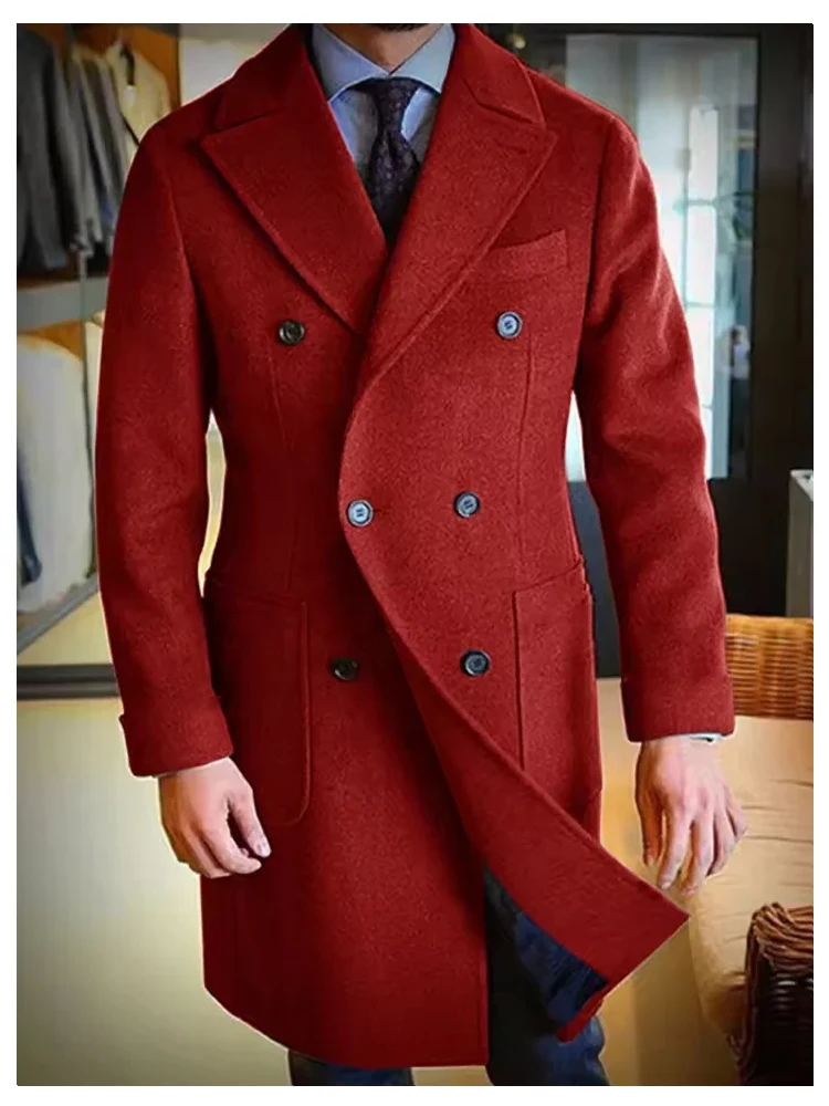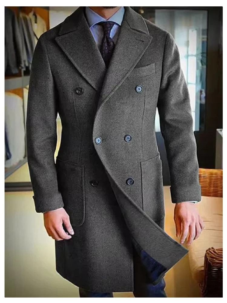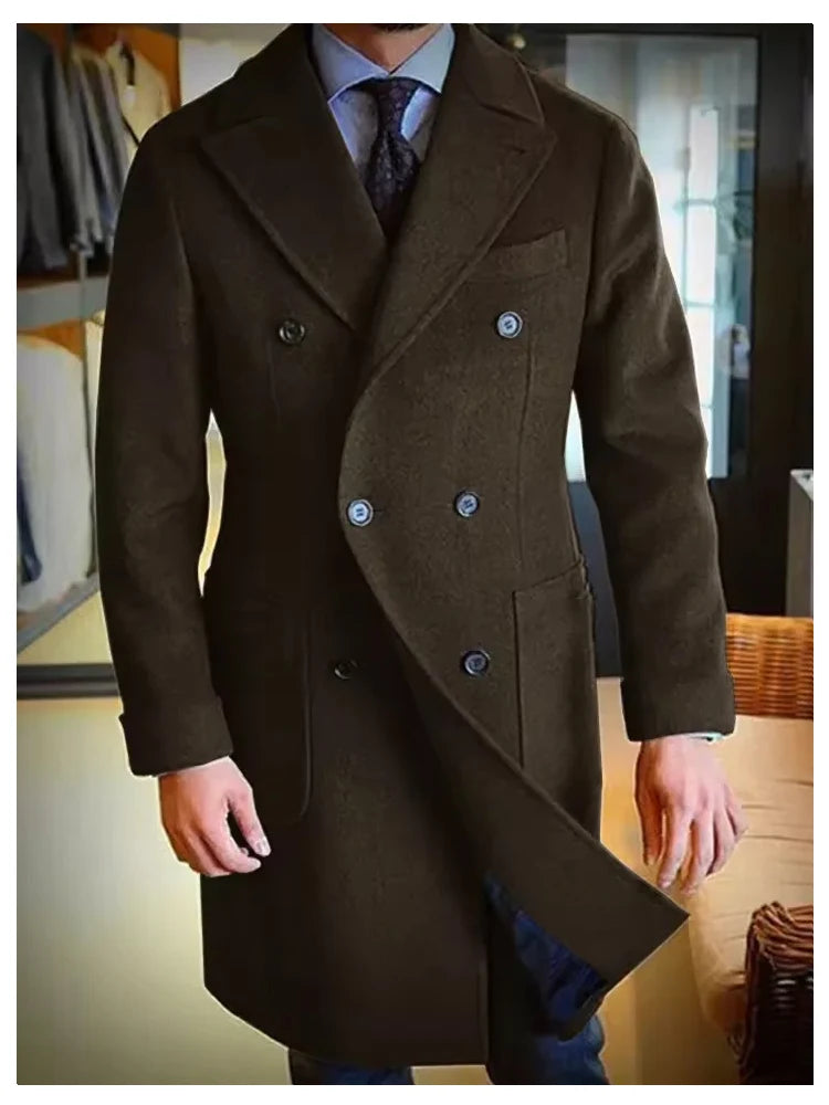 Luxury Men's Winter Long Blazer Double Breasted Business Jacket Elegant High Quality Male Elegant Man Long Coat England Style