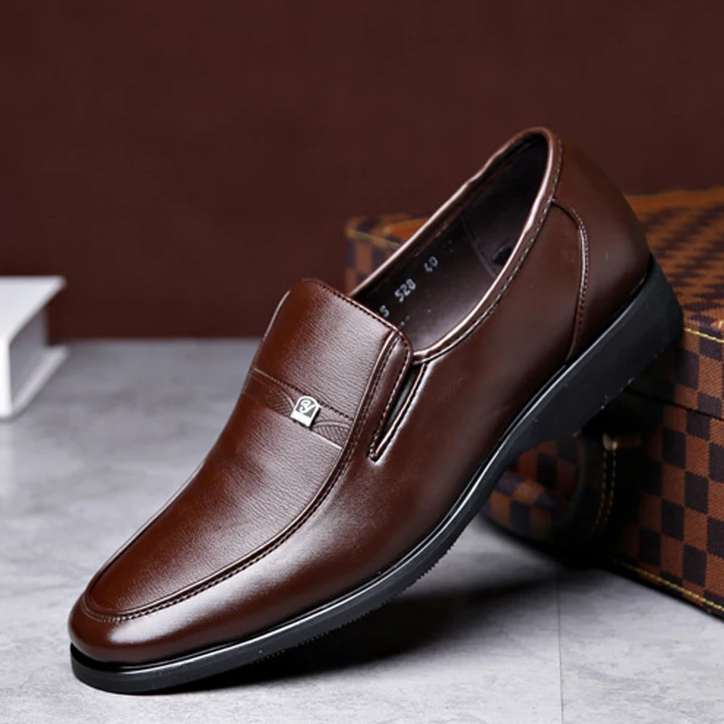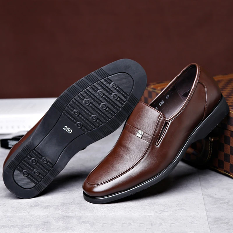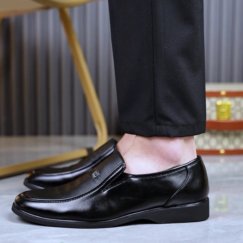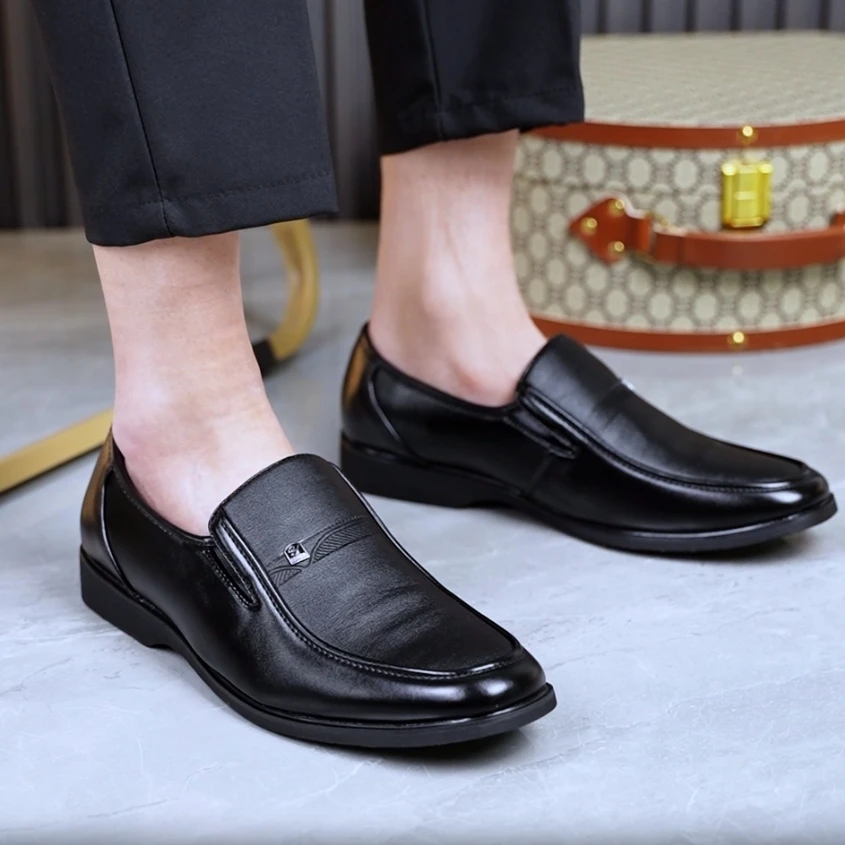 Men's casual leather shoes with soft soles for business formal wear - one-piece loafers