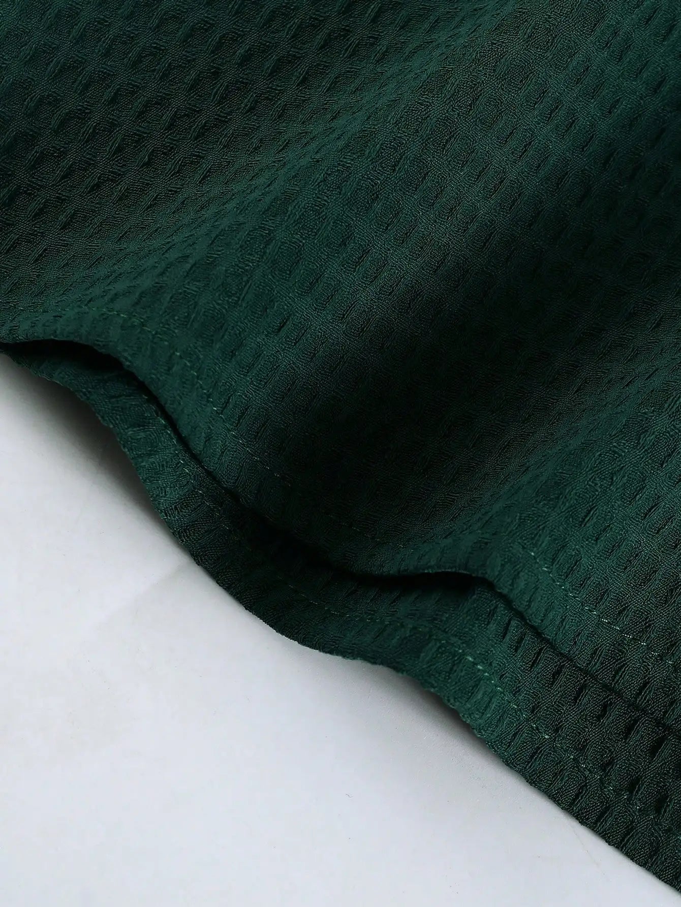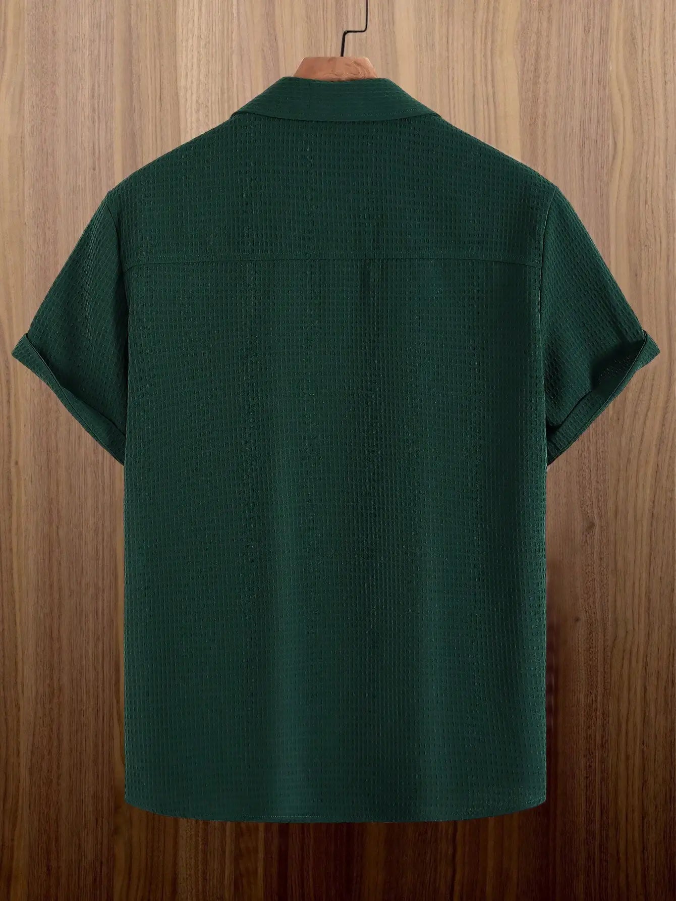 Men's Dark Green Waffle Knit Short Sleeve Button-Down Shirt Casual Spring Summer
