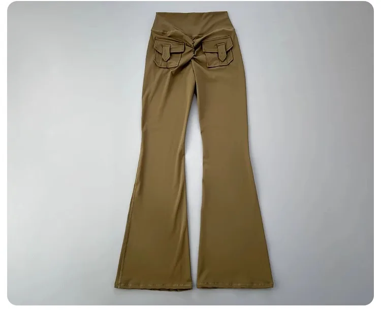 New pocket micro horn yoga pants for hip lifting fitness dance pants quick drying exercise training yoga pants