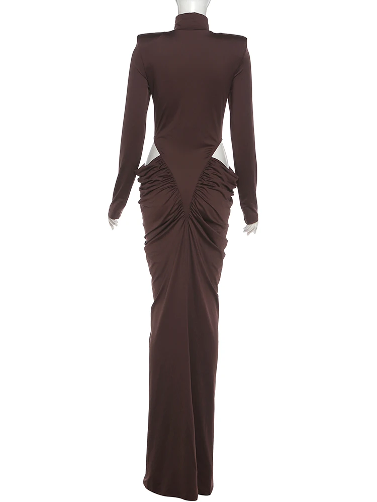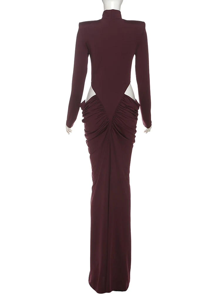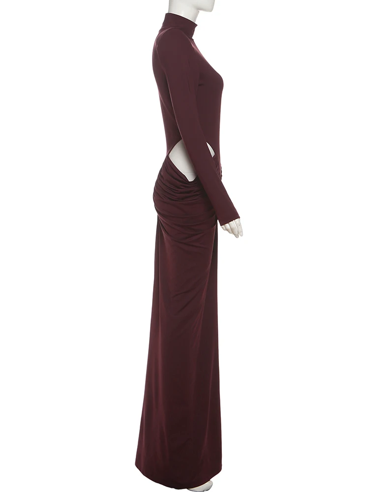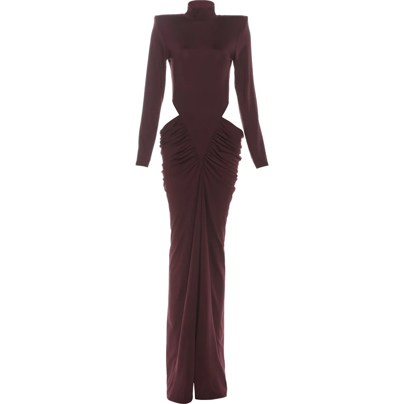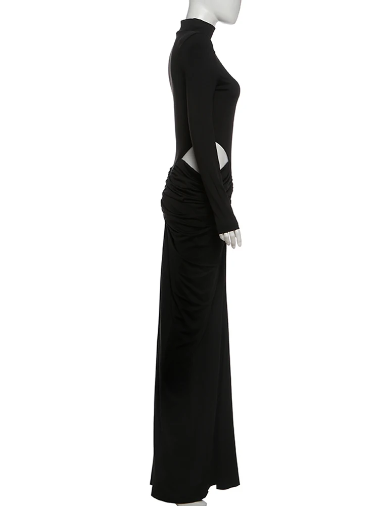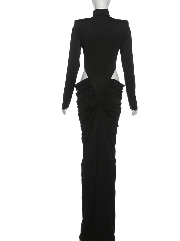 Nibber Hipster Waistless Ruched Elegant Dress Woman Autumn Style Turtleneck Full Sleeve Hollow Design Prom Party Long Bodycon