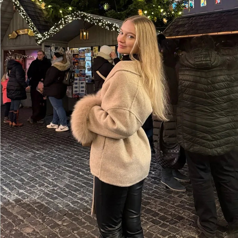 TARUXY Fox Fur Woolen Coats Women's Short Coat Office Lady Removable Elegant Double-sided Wool Overcoat 2025 New Cardigan Jacket