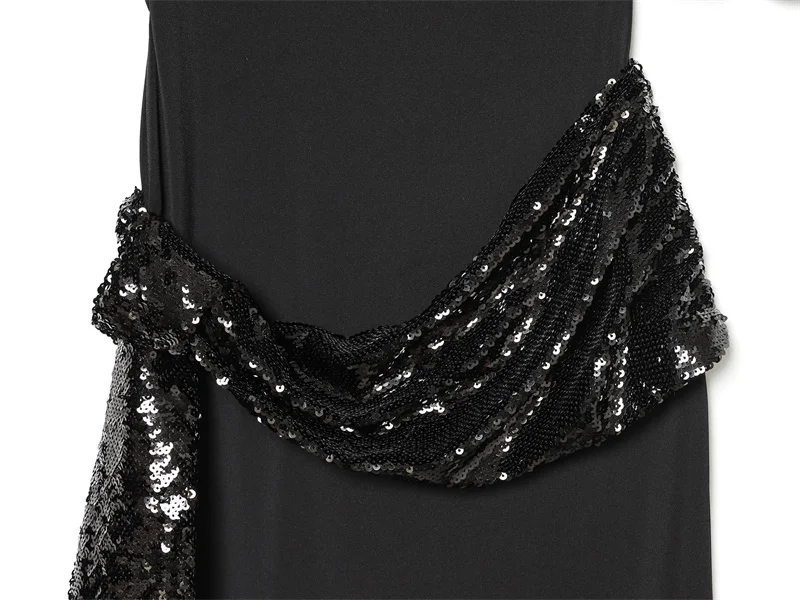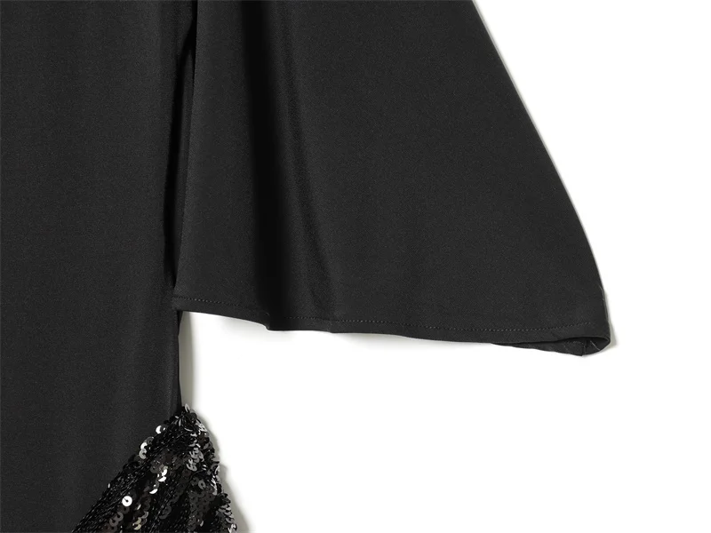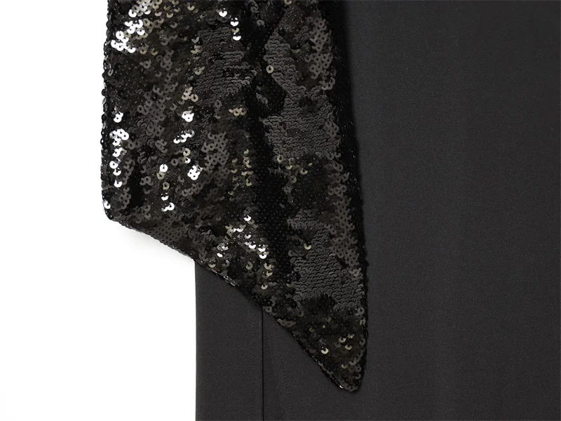 Women Backless Sequin Patchwork Maxi Dress Elegant Wide Sleeve Long Gowns Feminine New Fashion Evening Party Daily Robes