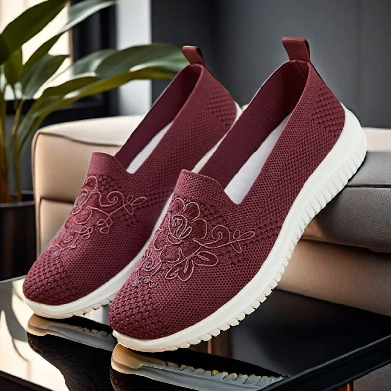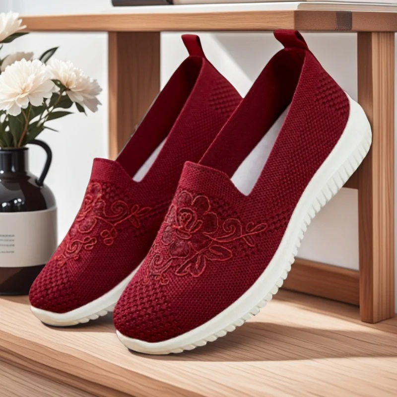 Women's Slip-On Knit Mesh Loafers Lightweight and Comfortable Breathable Mesh Walking Shoe Casual Embroidered Flat Loafers